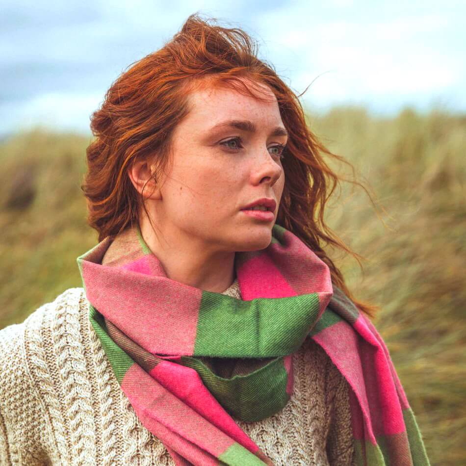 Šála z Merino vlny Pink Green Block 180x30 cm John Hanly